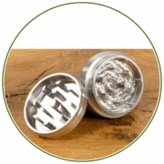 Ein Grinder ist ein mechanisches Gerät, das speziell dafür entwickelt wurde, getrocknete Kräuter – schnell und effizient zu zerkleinern. Im Inneren befinden sich scharfe Mahlzähne, die beim Drehen der beiden Hälften das Pflanzenmaterial in kleinere, gleichmäßige Stücke zermahlen. Der große Vorteil: Du erhältst ein feines, homogenes Ergebnis, das sich perfekt für das Drehen von Joints, das Befüllen von Bongs oder das Verdampfen im Vaporizer eignet.