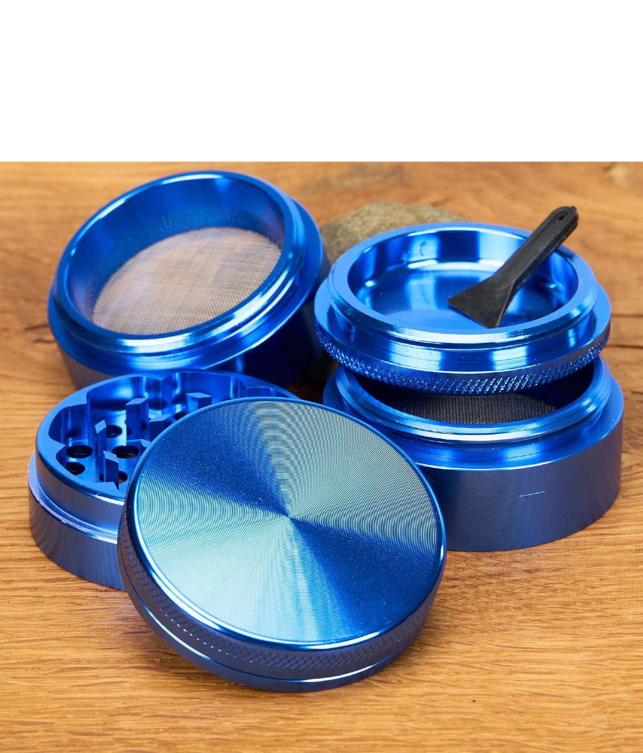 „Ich bin blau und bereit – lass uns was zerkleinern!“ Dieser robuste 5-teilige Aluminiumgrinder in strahlendem Blau nimmt es mit jedem Kraut auf – zuverlässig, effizient und mit doppelter Siebpower. Dank Grob- und Feinsieb kannst du deine Kräuter besonders präzise verarbeiten und selbst feinste Pollen auffangen. Mit einem Durchmesser von 50 mm liegt er gut in der Hand und ist ideal für den täglichen Einsatz geeignet.