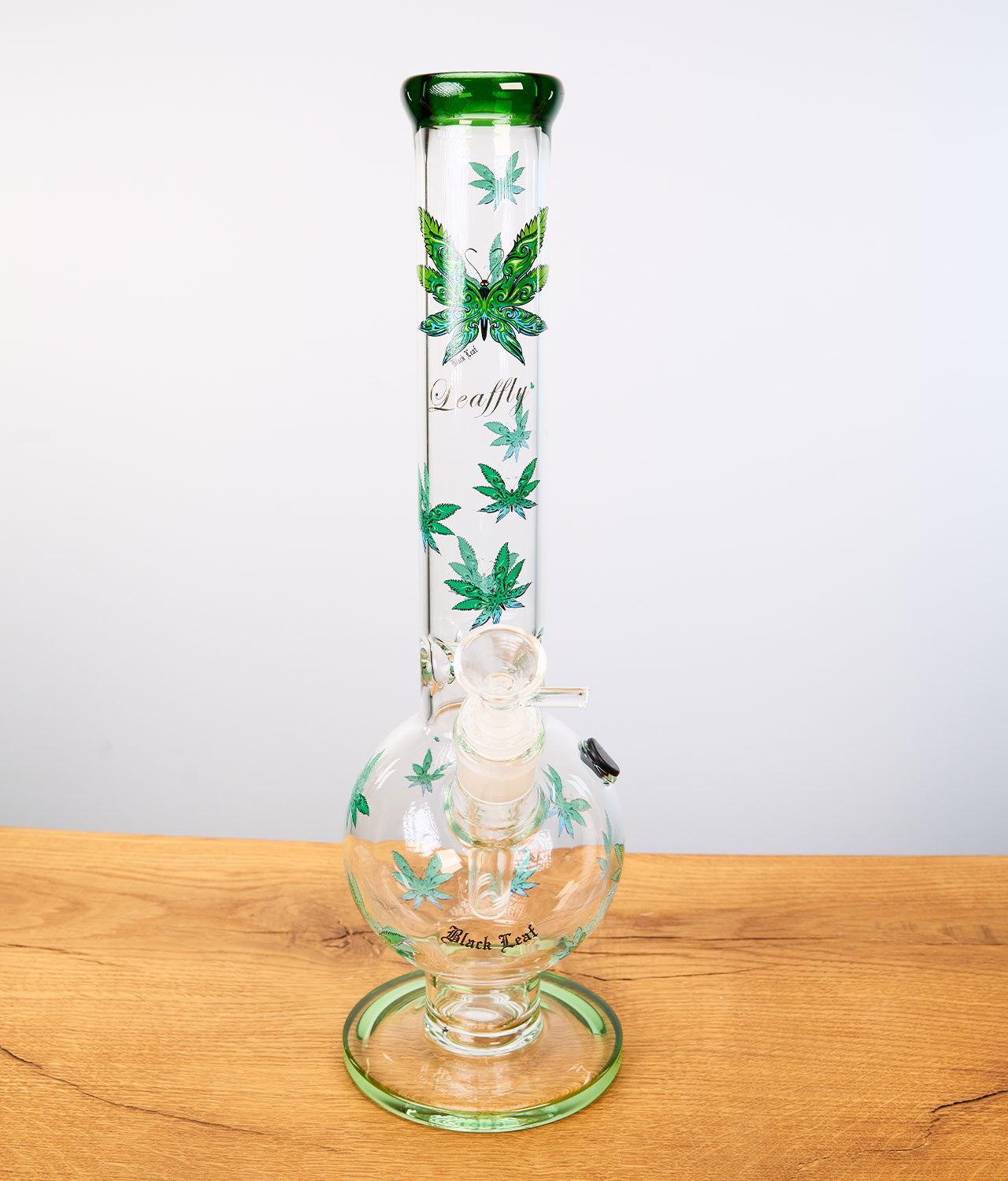 • NS19 Glasbong mit Rundfuß-Bauchform mit Hanfblatt-Design