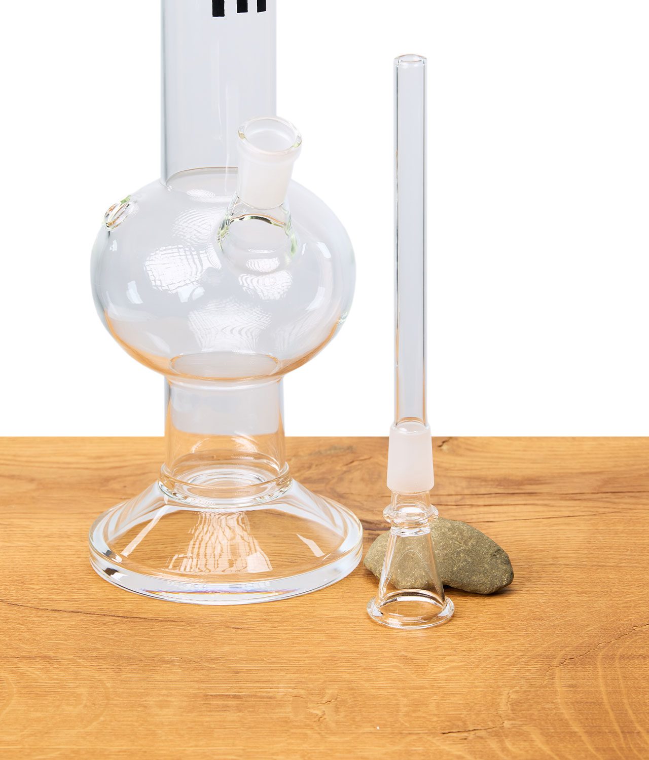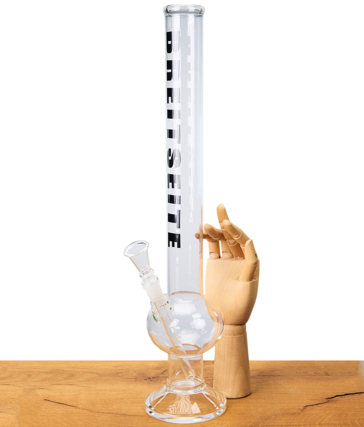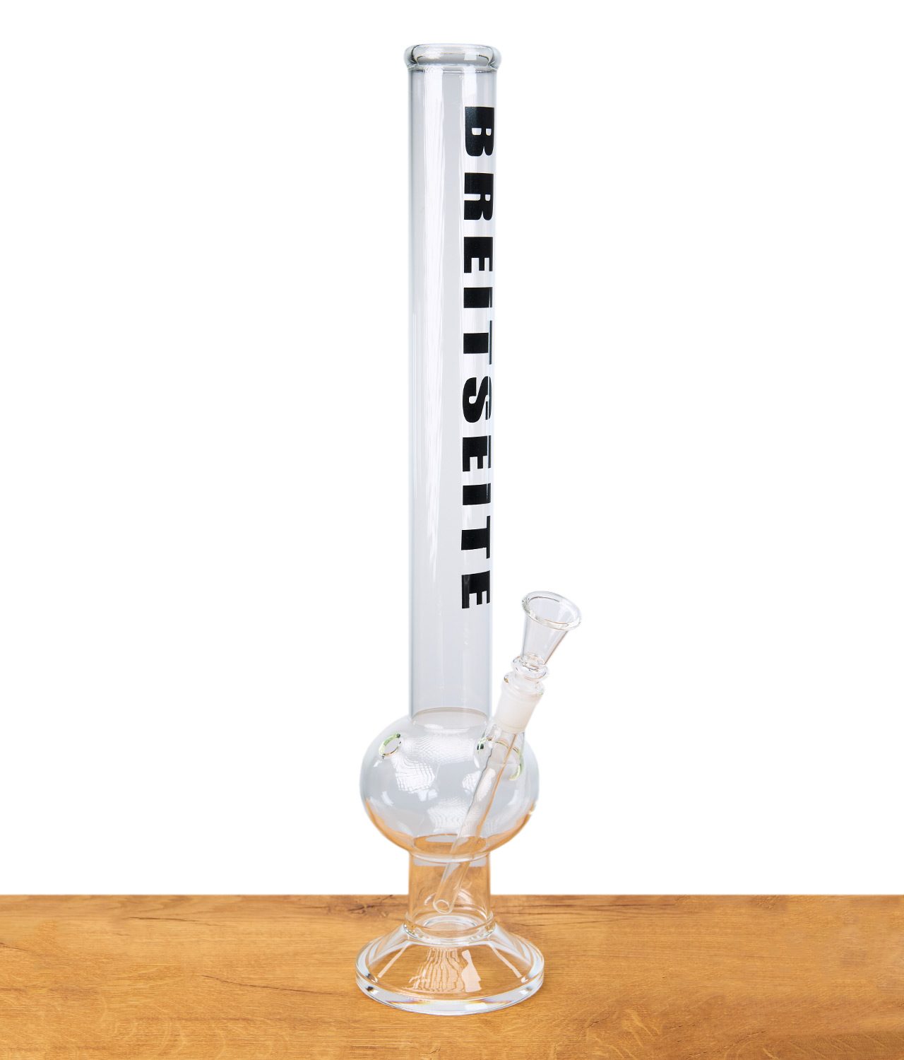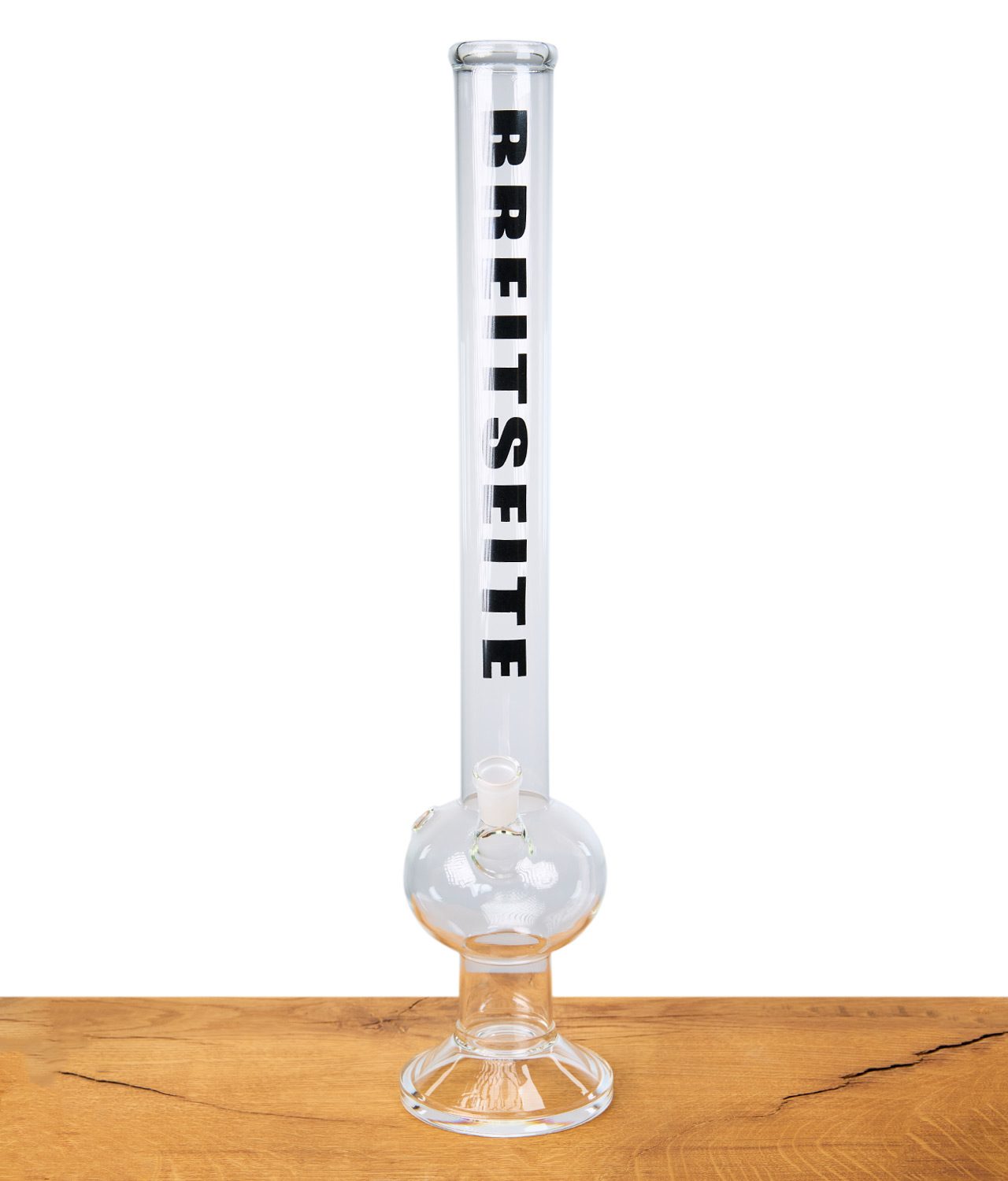 Bei dieser beliebten Bong der Marke Breitseite findest du den Schriftzug in der Mitte auf dem Zugrohr. Geliefert wird diese Bong mit Kickloch, Shillum und einem stabilen Standfuß.