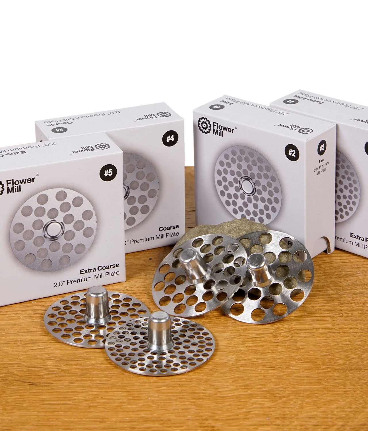 Alle Flower Mill 2,0" Mahlplatten werden aus lebensmittelechtem Edelstahl (Typ 304) in den USA gefertigt. Sie sind 34 % dicker als die Platten der Vorgängerversion und damit ausschließlich mit der Next Gen Version kompatibel. Die präzise verarbeiteten Lochgrößen (2,54 mm bis 5,59 mm) sorgen zudem für ein optimales Mahlergebnis ohne nerviges Nachgrinden.