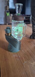 Durch die ergonomische Form liegt das Glas angenehm in der Hand. Das Nachfüllen und Anheben des E-Rigs ist besonders komfortabel. Für die Reinigung einfach den Holzring abnehmen, das Glas in Isopropanol (99%) einlegen, anschließend gründlich mit Wasser ausspülen und an der Luft trocknen lassen. Der Holzring darf nicht in Alkohol eingelegt werden.