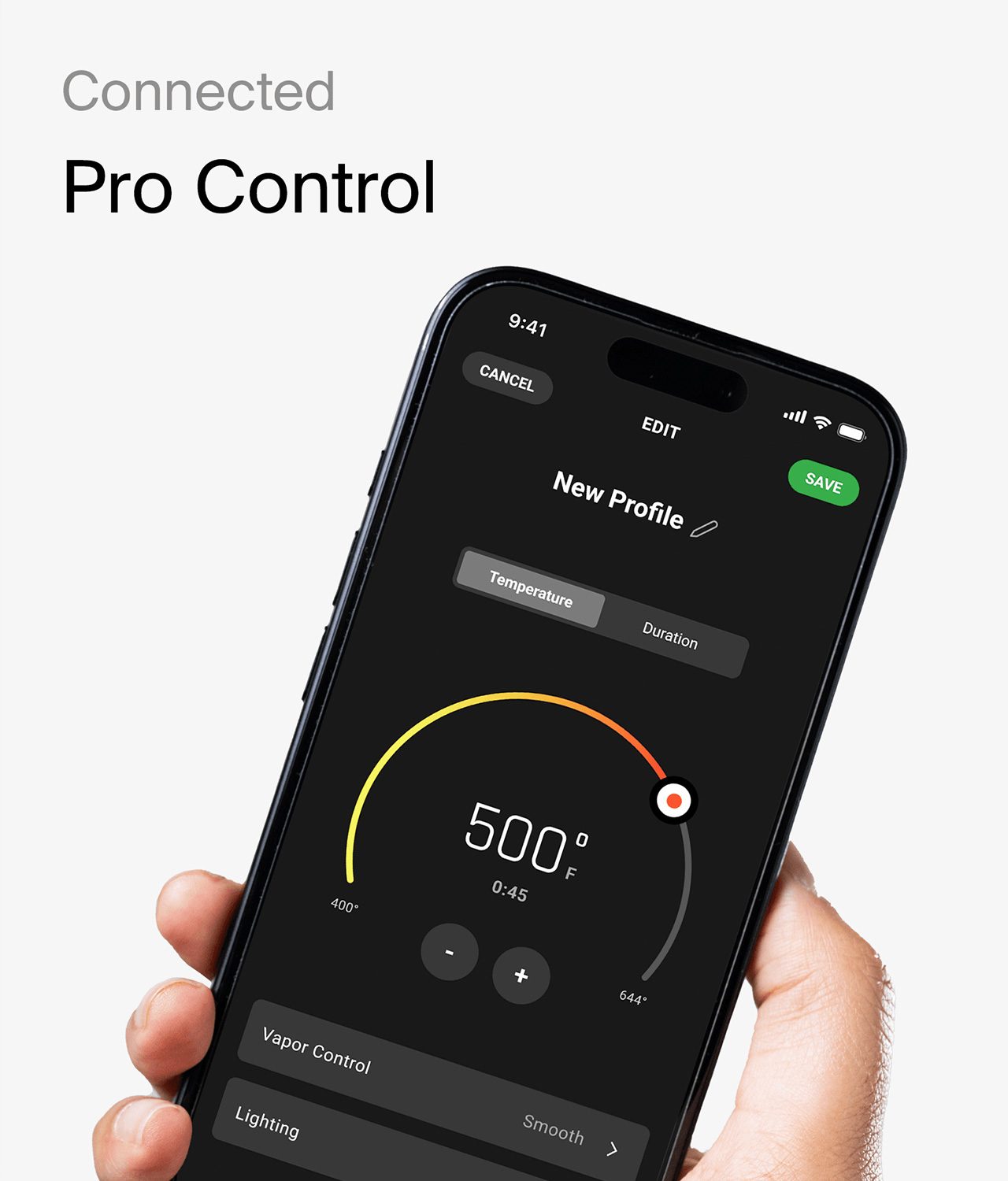 • Volle Kontrolle über Heizprofile, Lichteffekte und Akkulaufzeit via Puffco Connect App