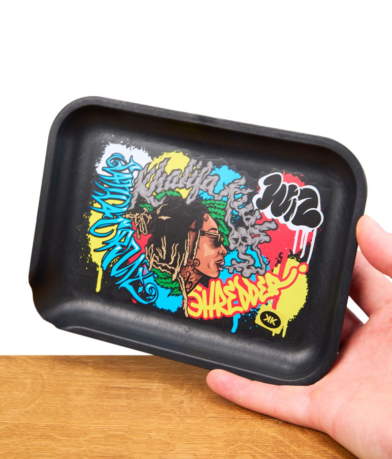 Das farbenfrohe Rolling Tray von Santa Cruz Shredder x Wiz Khalifa mit einem markanten Joint auf der Oberfläche macht das Hanf Tray zum Blickfang auf jedem Tisch. Hergestellt aus natürlichem Hanf ist es nicht nur umweltfreundlich, sondern auch extrem robust und langlebig. Der praktische Ausgießer verhindert Verschüttungen und erleichtert das Rollen. Mit einer Größe von ca 19,69 x 14,61 cm ist es perfekt für unterwegs oder für den heimischen Gebrauch geeignet.